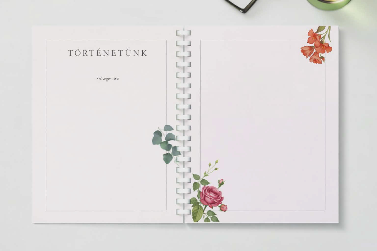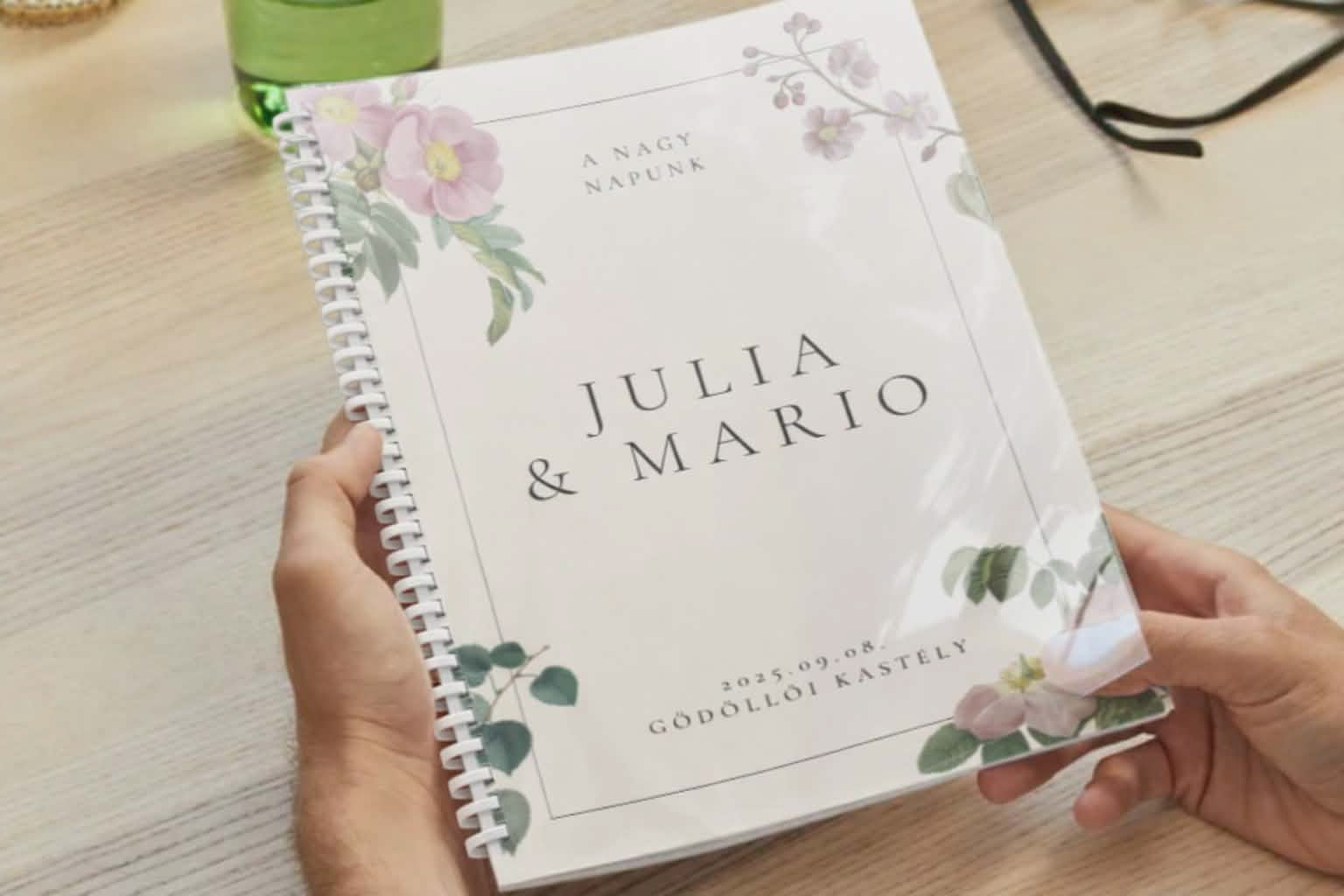 A beszédet választható, elegáns grafikával ellátott, igényes papírra nyomtatott, esztétikus spirál kötéssel, áttetsző borítóval kapjátok, amiben benne van a teljes ceremónia szövege, a fogadalmaitok és hely a gratulációknak.