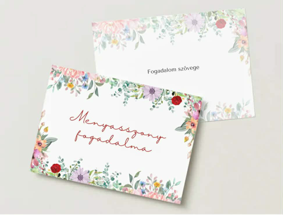 Két elegáns tervezésű, az esküvőtök stílusához passzoló kártyák a fogadalmaitoknak, hogy a nagy 'Igen' vizuálisan is felejthetetlen legyen.
